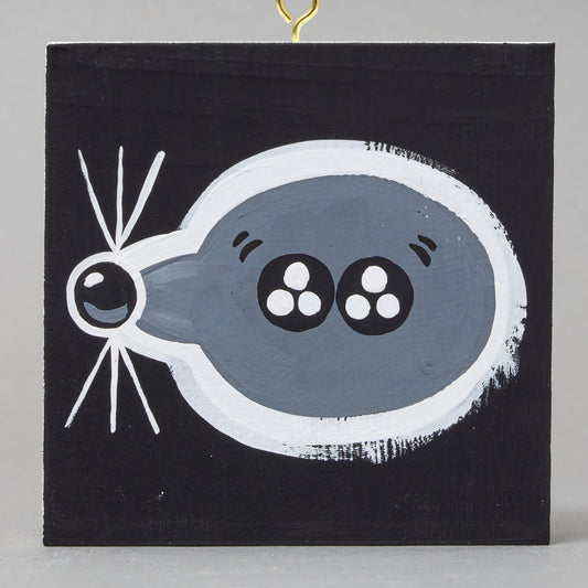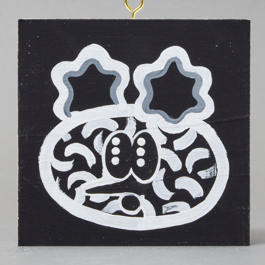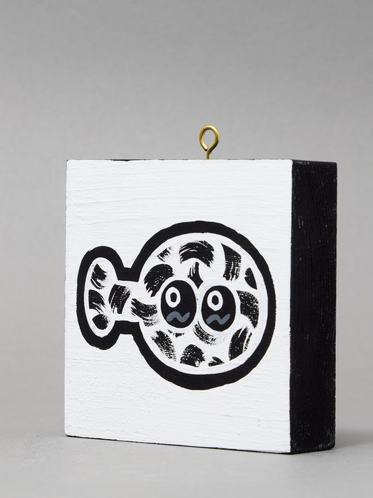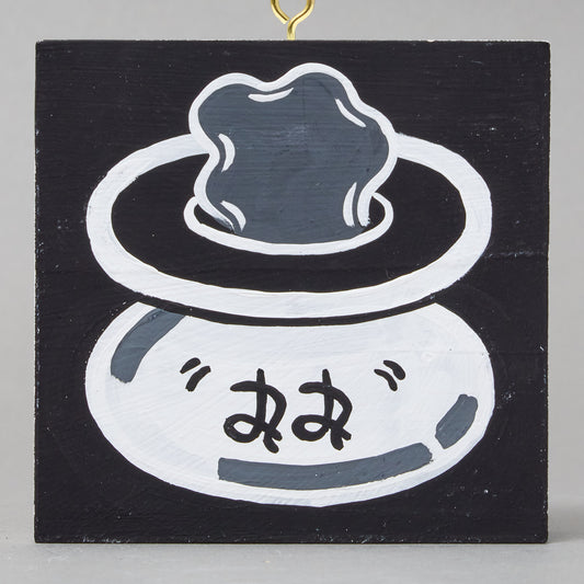 本作品にはフックが付いているほか厚みがあるため、吊したり置いたりと身近なインテリアとしてもお楽しみいただけます。