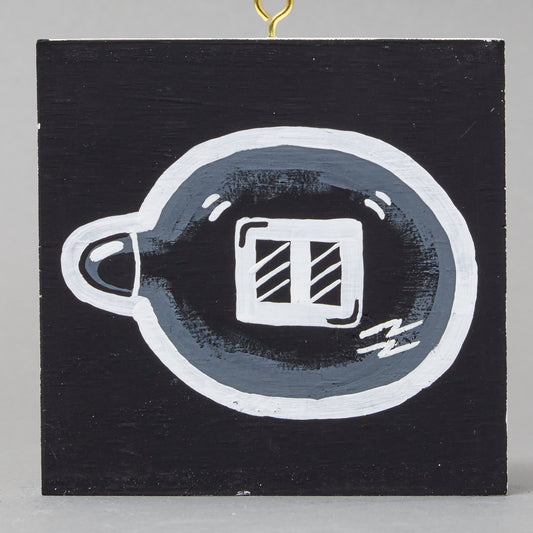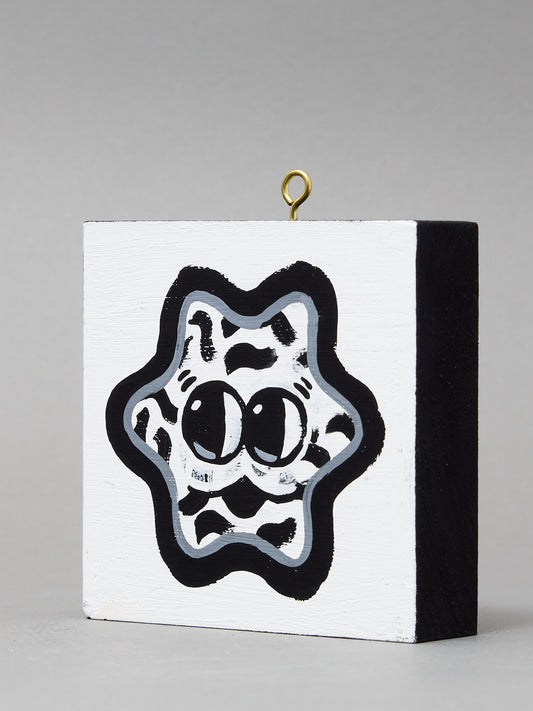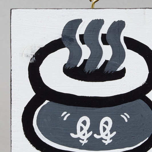 本作品にはフックが付いているほか厚みがあるため、吊したり置いたりと身近なインテリアとしてもお楽しみいただけます。