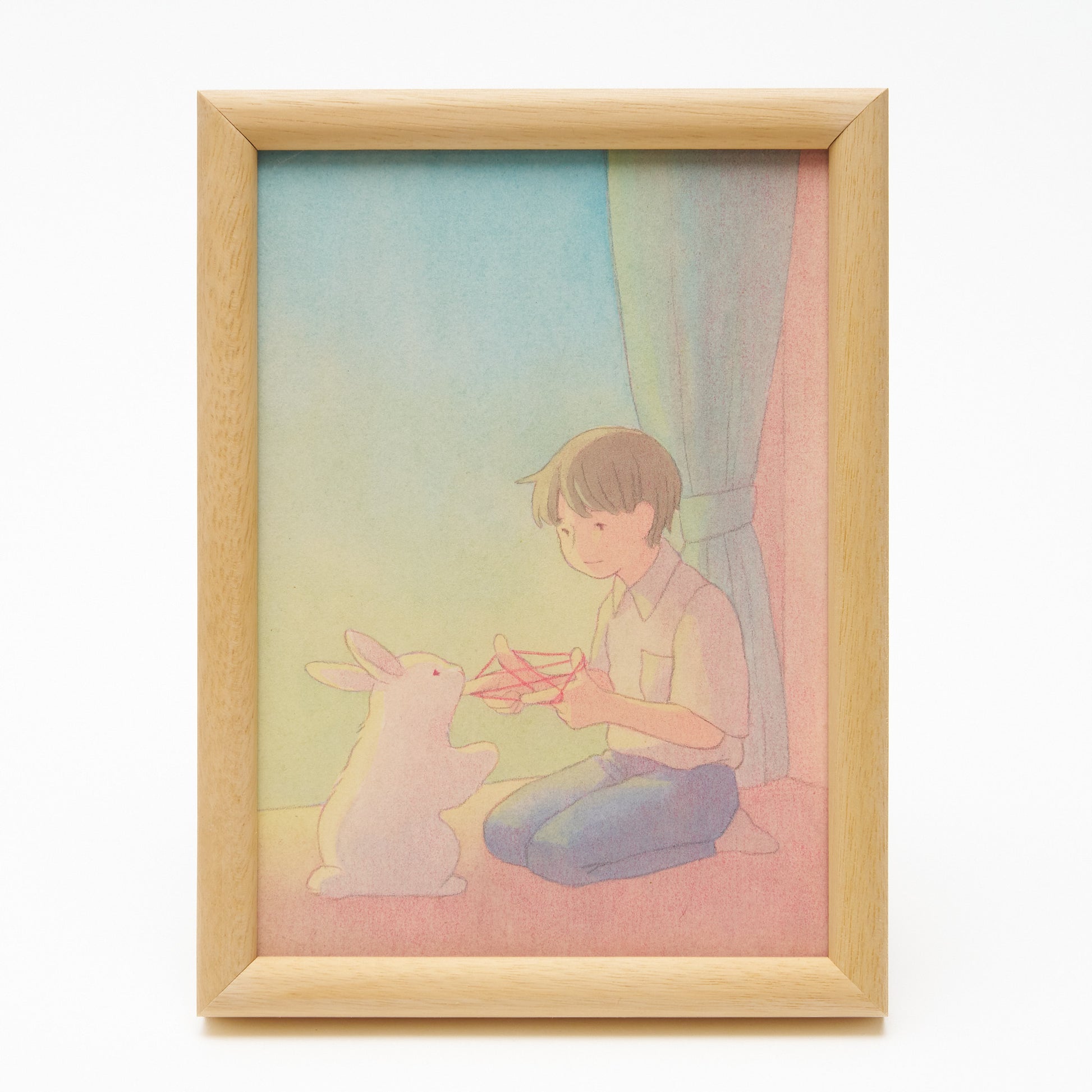 ※「無印良品」と記載されたフレームの作品は、2枚のアクリルで原画を挟むだけで、テープなどでアクリル板に固定せずに発送します。そのため絵の具の影響で画用紙が波打っている作品は、周囲に隙間が見える場合があります。