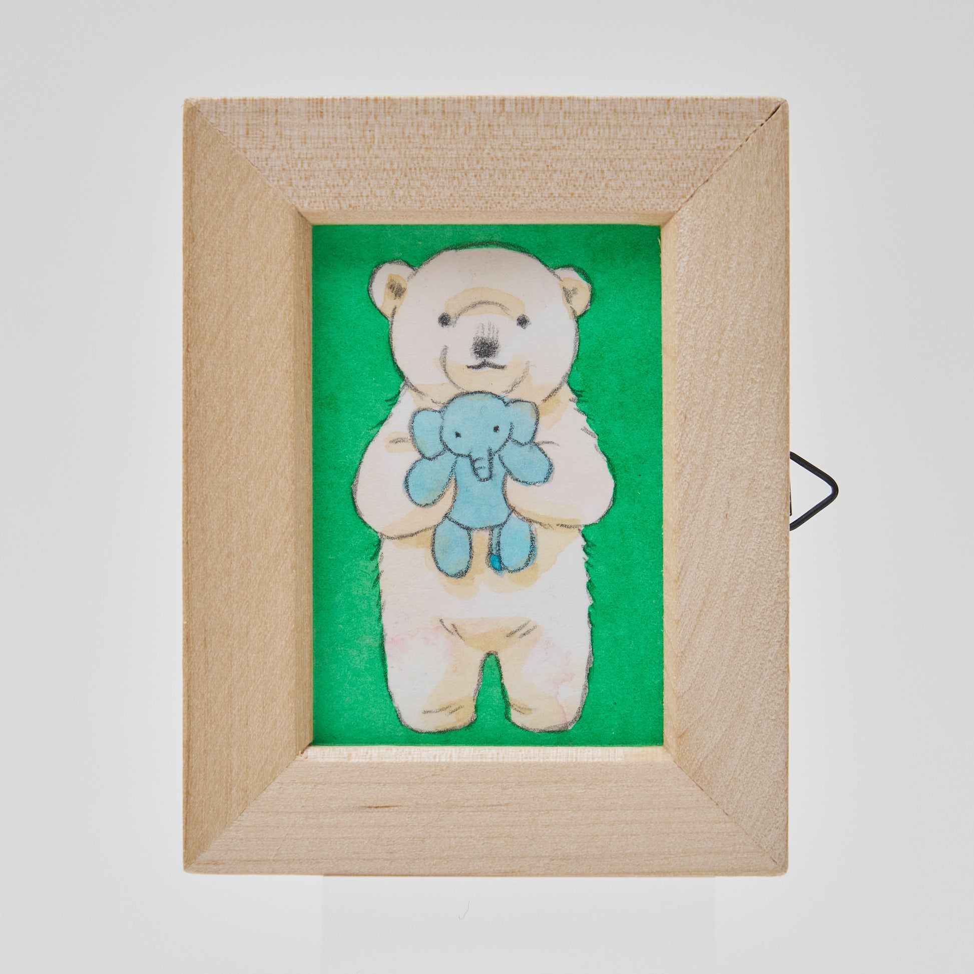 サイズは小さくとも、水彩絵の具と鉛筆で描かれた原画です。裏面にはサインが描かれています。