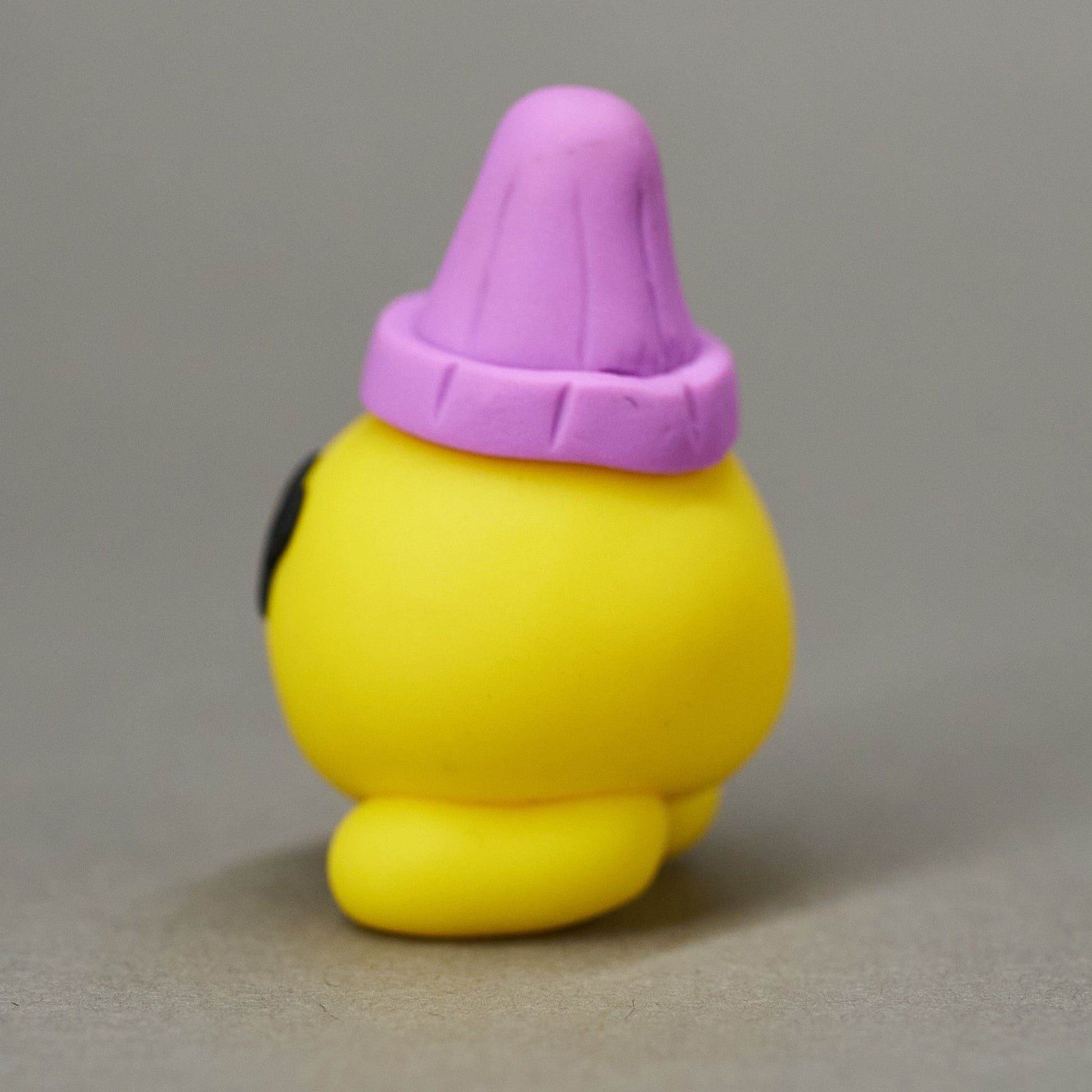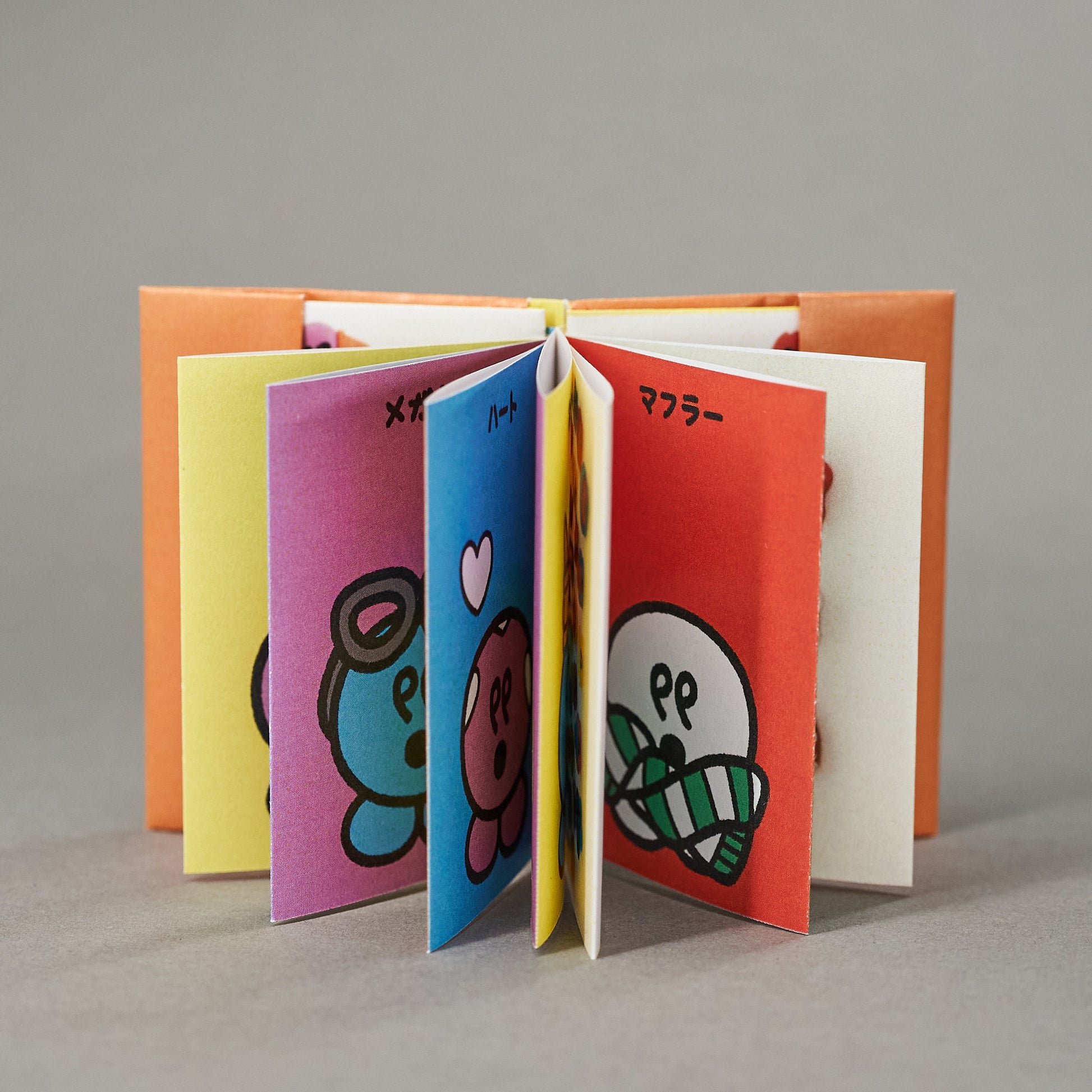 マスコットはポリマークレイを手でこねて造形し、オーブンで焼き上げています。写真ではわかりにくい歪みがあり、チリが付着している場合があります。BOOKは紙を切って組み合わせた状態で、糊付けなどの製本はされていません。どちらも強い力を加えると破損する可能性がありますので、取り扱いにはじゅうぶんご注意ください。