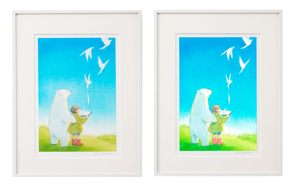 ジークレー技法を用いて原画に忠実な色を再現した『minamo print』でプリントされます。サイズも原画と同じです。