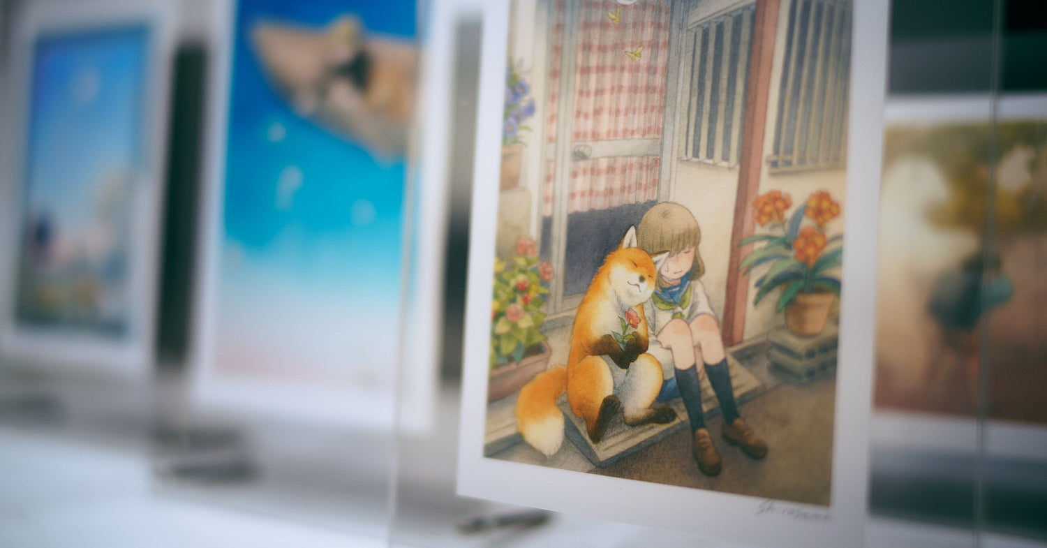 これまでしろさめは「個展での原画の販売」にこだわってきました。そんな彼女が素晴らしい色再現を可能にした『minamo print』との出会いによって「多くの皆さまに複製原画をお届けしたい」と考えることになりました。『minamo print』の強いこだわりや丁寧な取り組みについてご紹介します。