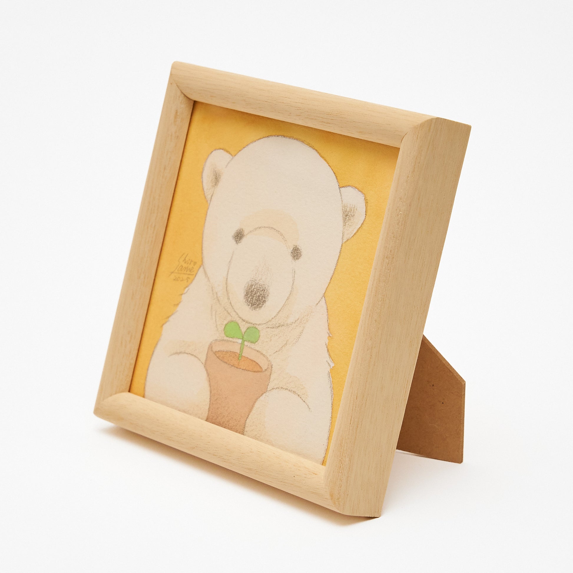 しろさめが描いた原画と、木製の額(スタンド付き)のセットです。