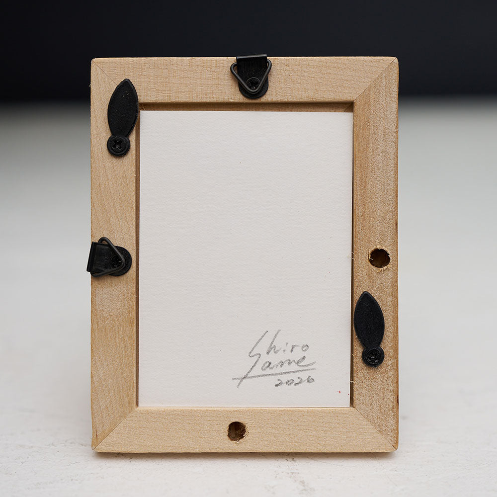 フレームは色、木目、サイズに個体差があり、アタリ傷や歪みが生じているものもあります。フレームは原画のオマケとして付属している、木製の雑貨としてご理解の上でお求めくださいますよう、お願い申し上げます。